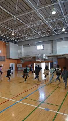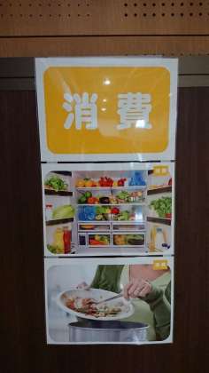 でも私服です。家庭科の学習でした。フードロスについて、ゲームを通して体験する「フードロス鬼ごっこ」をしていました。