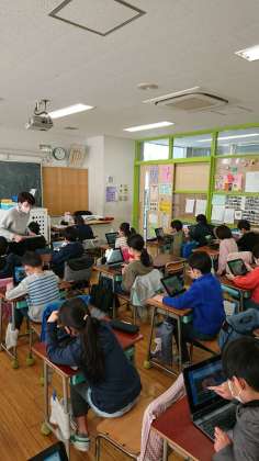 3年生は、タブレットPCを使って、プログラミングソフトを使って学習をしていました。
