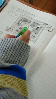 この学習、「立体」の単元の中の内容です。ということで、次回はさらに空間的な位置も表す学習をします。