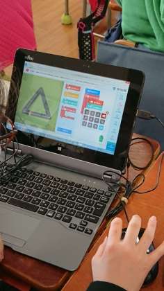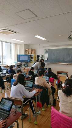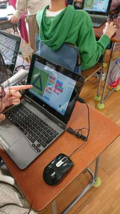 5年生は、算数の図形の学習の関連でプログラミングの学習をしていました。