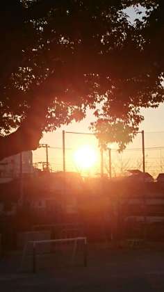 おはようございます。今朝は、朝焼けと共に細い月が昇ってきていました。美しい光景にしばし心を奪われましたが、はっと我に返り出勤しました。学校に来ると明るい太陽が校舎やくすのきを照らしています。太陽が顔を出す時刻が早くなり、季節が進んだのを感じました。