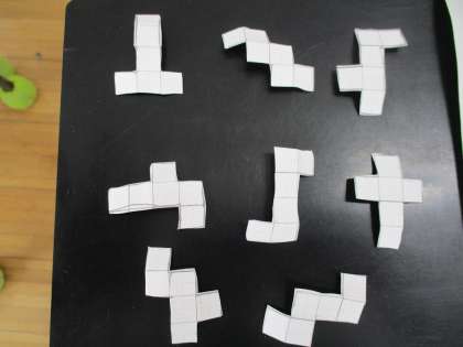 もちろん立方体の展開図をすべて作ることに挑戦している児童も。意欲的に学習に取り組んでいる姿勢はいつ見ても気持ちがよいものです。