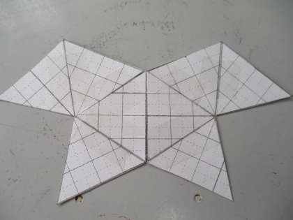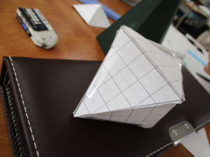 立体のしくみを、展開図や見取り図を書いて学んできました。今日は復習をした後、作ってみたい立体にチャレンジ!展開図を考えて作ってみたり、面の数を数え、いったん貼り合わせた後、改めて展開図を作ってみたり。子供たちなりに新しい立体を作るのは楽しいようでした。