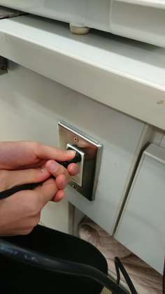 これまでは、電源を差さずに操作を行ってきましたが、いよいよこの時が・・・コンセントにプラグを差し、電源を入れます。