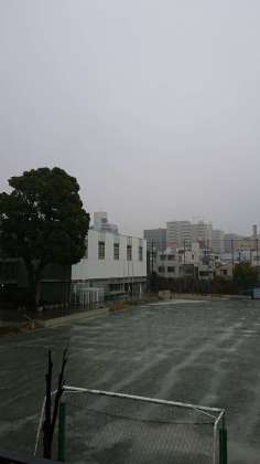 雨が本格的に降ってきました。校庭は、こんな状態です。今日は、室内で活動します。