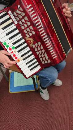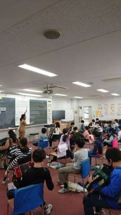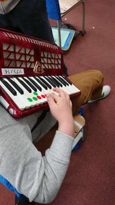 2人に1人は楽器を持って演奏しています。なかなかの数です。アコーディオンだけでこれだけ揃って演奏するのはこれまであまりありませんでしたが、呼気を必要としない楽器なので現在の状況下でも安心して使えます。昨日の6年生の記事でも紹介したように、これはこれで広く楽器を経験することができてとても良いなあと思います。