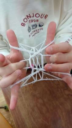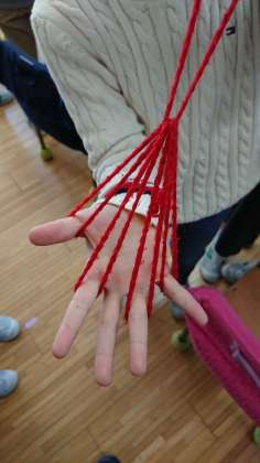 2年生が、生活科の昔遊びで「あやとり」をしていました。