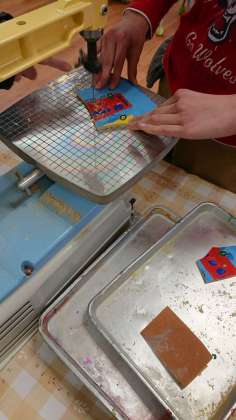 先週から電動のこぎりで木を切る練習をして、いよいよ今日は作品を切っていきます。「作品を切る」というと、何だかドキリとしますが、パズルなので仕方ありません。「切り分ける」に変えてみたらどうでしょう。それではやり直し。・・・いよいよ今日は、作品を切り分けていきます。