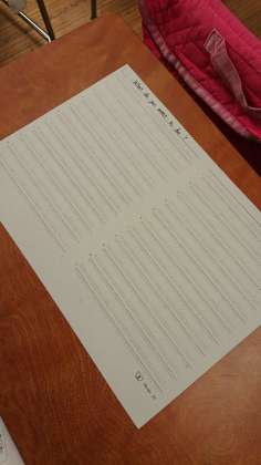 なりたい職業について文章に書く学習をしていました。線の引かれた紙が渡されています。結構たくさん書くところがあって大変そうです。書けるのかな、心配になる子もいると思いますが、大丈夫です!ある程度の型に沿って進めていきます。