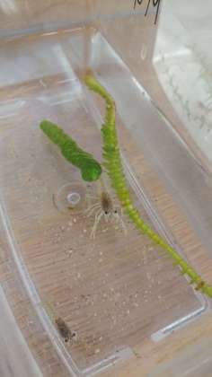 おお、ザリガニさん、かなり大きくなりました。まだ色は透明です。