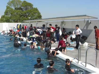 洋服を着ていると、水着で泳ぐ時よりも力がいることや、