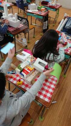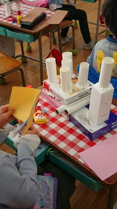 1年生の工作は、発想が豊かで見ていて楽しいです。こういった自由度の高い作品になると尚更です。そこには、子供たちなりの思いがいっぱい詰まっているのです。