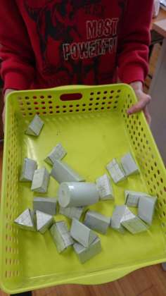 展開図が間違っていると、きちんと立体になりませんが、角柱・円柱の展開図はしっかり身に付いているようです。たくさん立体ができていました。