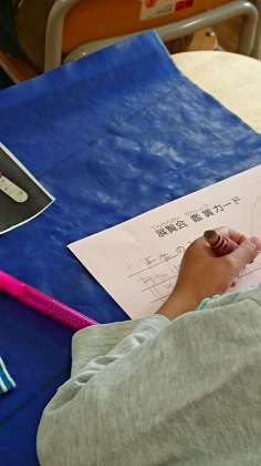 きはだ学級では、昨日鑑賞した展覧会を振り返り、鑑賞カードを書いていました。