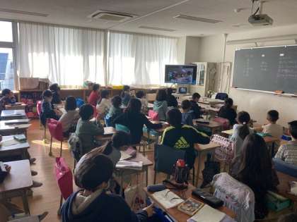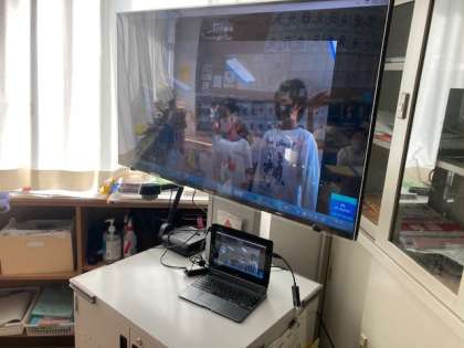 来週の本番ではリモートで行うため、今日は3組と4組でリハーサルをしています。普段は隣の教室にいる友達ですが、中々一緒に学習する機会がないので、みんなうれしそうです。