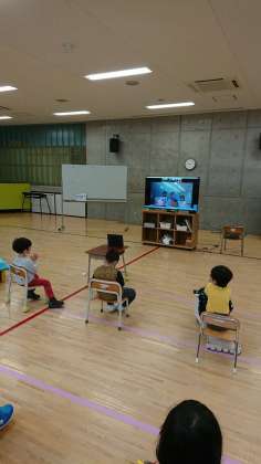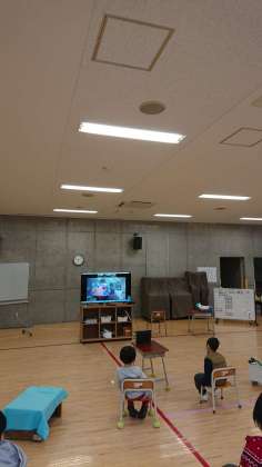 最後にまた3年生の教室へ。「わ」の先にいるくすのき学級、きはだ学級の子供たちが画面に映っています。それぞれの場所でも、つながっていること、「わ」になっていることを実感できる活動でした。