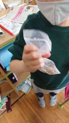を作っていました。用意するものは、鉄粉・活性炭・食塩水・ティッシュ・コーヒーフィルター・ジッパー付き袋。これらを混ぜたり、足したりしながら、しばらく振ると発熱し出して、「カイロ」になるそうです。