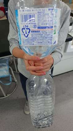 終わった子は、ペットボトルを使ったトルネード水流の実験をしていて、