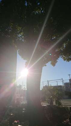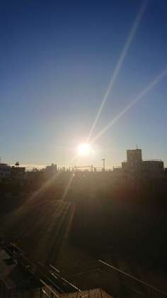 太陽光線が強い。今日は天気は良さそうですが、今朝も風が残っています。気を付けて登校してください。