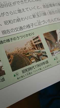 今の世田谷区については以前に学んでいました。昔の世田谷区はどんな様子で、どうやって今の世田谷区になっていったのか、学んでいきます。今日は、交通の様子の移り変わりについて学習していました。