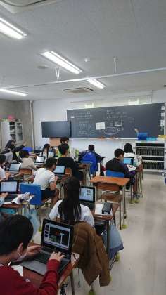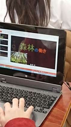 5年生は社会科で調べたことをパソコンでまとめて発表する準備をしていました。学校のタブレットPCを使っています。
