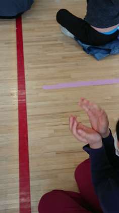 くすのき学級が、久しぶりに小アリーナで音楽の授業を行っていました。
