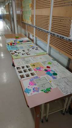 くすのき学級の教室の前には、先日の3年生との交流で3年生が作って見せていた自己紹介などを載せた新聞が届けられていました。画面越しでは細かいところまで見られなかったので、実物が届くと分かりやすいですね。そして、こうして物が届くとリアル感がぐんと増す感じがします。