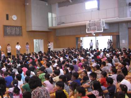 5分前には758人全員が静かに集合することができました。