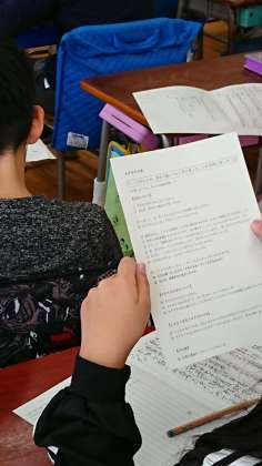 初めの感想には、学習を進めていく上でポイントになることや、より深めて考えていきたいことを考えるヒントになる内容がたくさんあります。皆、真剣に読んでこの後の学習への準備をしていました。自分が考えなかったような視点で書かれている感想などにも出会えます。