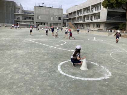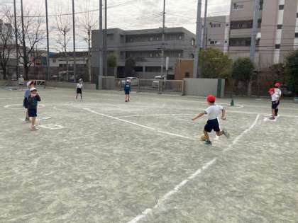 初めは、「蹴って走る」ことや、「ベースを踏む」ことに慣れずにいましたが、何回かゲームを重ねていくことで、ルールを理解して楽しんで取り組んでいます。