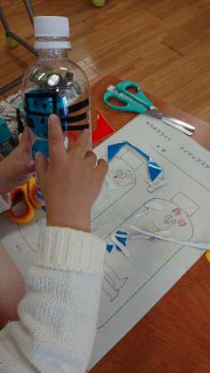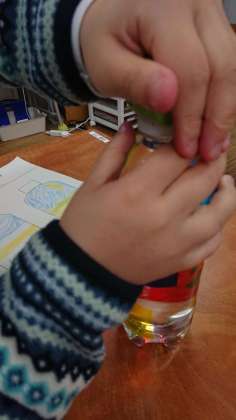 きはだ学級の図工です。今日は、「キラキラライト」を作っていました。