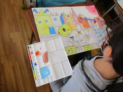 背景を薄く塗ることで、絵がとても映えることに気付いた子供たちもいました。