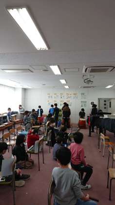 くすのき学級の音楽で、「八木節」の合奏の練習が続いています。
