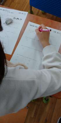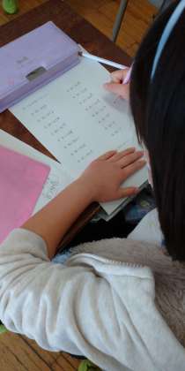 36÷6のように答えがわり切れるものもあれば、56÷6のように余りのあるわり算もあります。また、文章問題から式を考え、答えを導く問題もありました。
