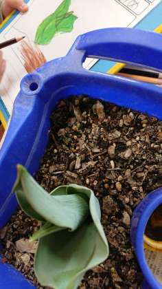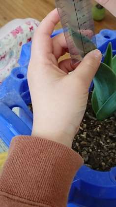 1年生がチューリップの球根の観察をしていました。