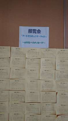 6年生の教室の前には、展覧会「アートでコミュニケーション」の取り組みで届けられた6年生の作品へのコメントが書かれたカードがびっしり掲示されていました。