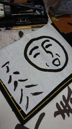 ちなみに、真ん中の顔はあまりにもいい表情だったので1枚撮らせてもらいました。「作品を仕上げてから書いた」「紙は自前のものである」とのこと。よしとしましょう。