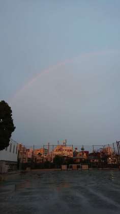 夕方、虹が出ていました。雨はまだ降っているのに。おもしろい現象です。