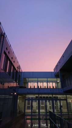 反対側の空はきれいな色に染まっています。なるほど、虹が出た理由が何となく分かりました。こちら側の雨は止んでいるようです。