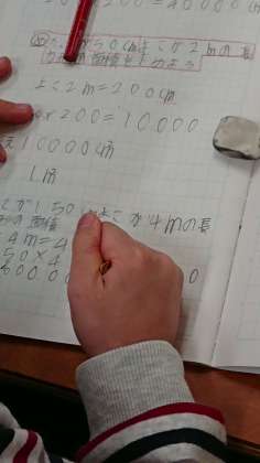 きはだ学級では、算数で面積の単位換算の学習をしていました。