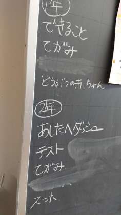 きはだ学級では、残りのやることを黒板に書いて、できたところから1つずつ消していますした。学期末、それぞれの学習のまとめが続いています。