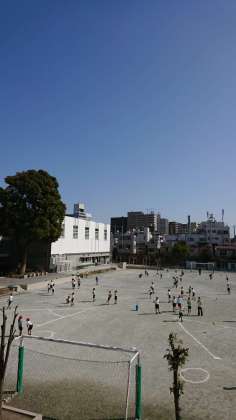 3年生は、校庭でキックベースをしていました。