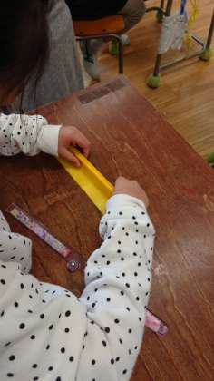 先生に聞いたり、うまくできた友達に教えてもらったりしながら、入学してくる1年生のためにがんばっていました。