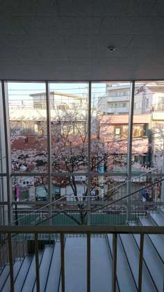 こちらは昨日も紹介した北校舎2階・3階から見える桜です。階段下、階段、階段の上、それぞれきれいに見えます。