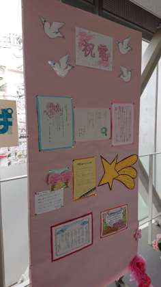 校内には、お祝いの掲示がたくさんあります。