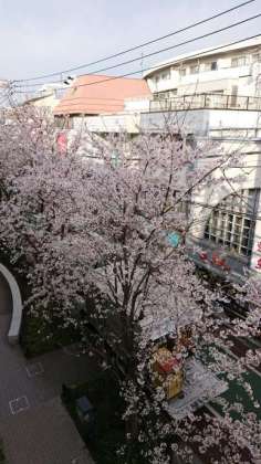 これは、保護者の皆様はもちろん、子供たちもほとんどのぼることはない(しかもこの時期に)ので、貴重画像かもしれません。上から見る桜の木いかがでしょうか。