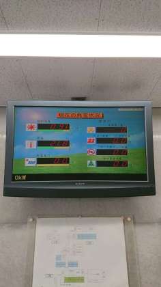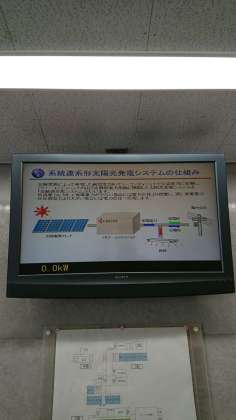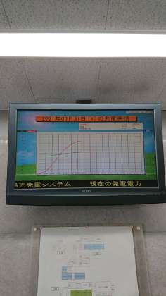 朝は動いていなかった事務室前のソーラー発電の画面は動き始めるとこんな感じです。