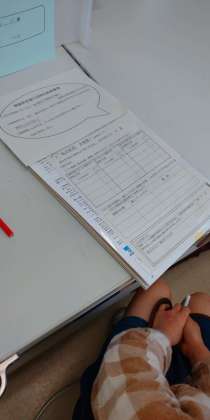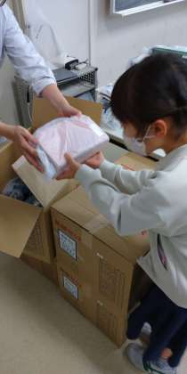 今日は、さっそく裁縫道具を受け取りうれしそうにしていました。