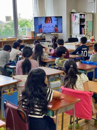 また、海外に赴任した先生とは、ZOOMを使ってリアルタイムで繋がることができ、遠く離れた場所にいる先生にも子供たちの気持ちを伝えることができました。