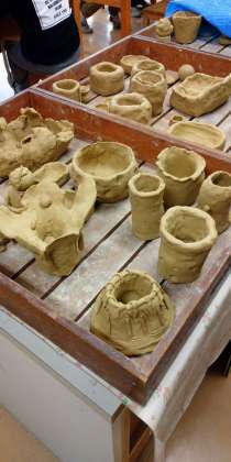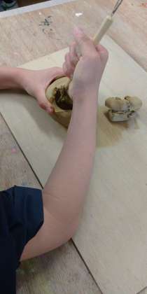 6年生が粘土を使って、日常的に使えるものの制作していました。